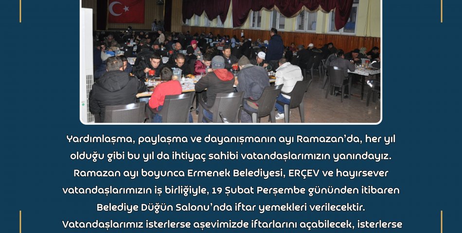 RAMAZAN AYI BOYUNCA İFTAR YEMEĞİ VERİLECEKTİR.