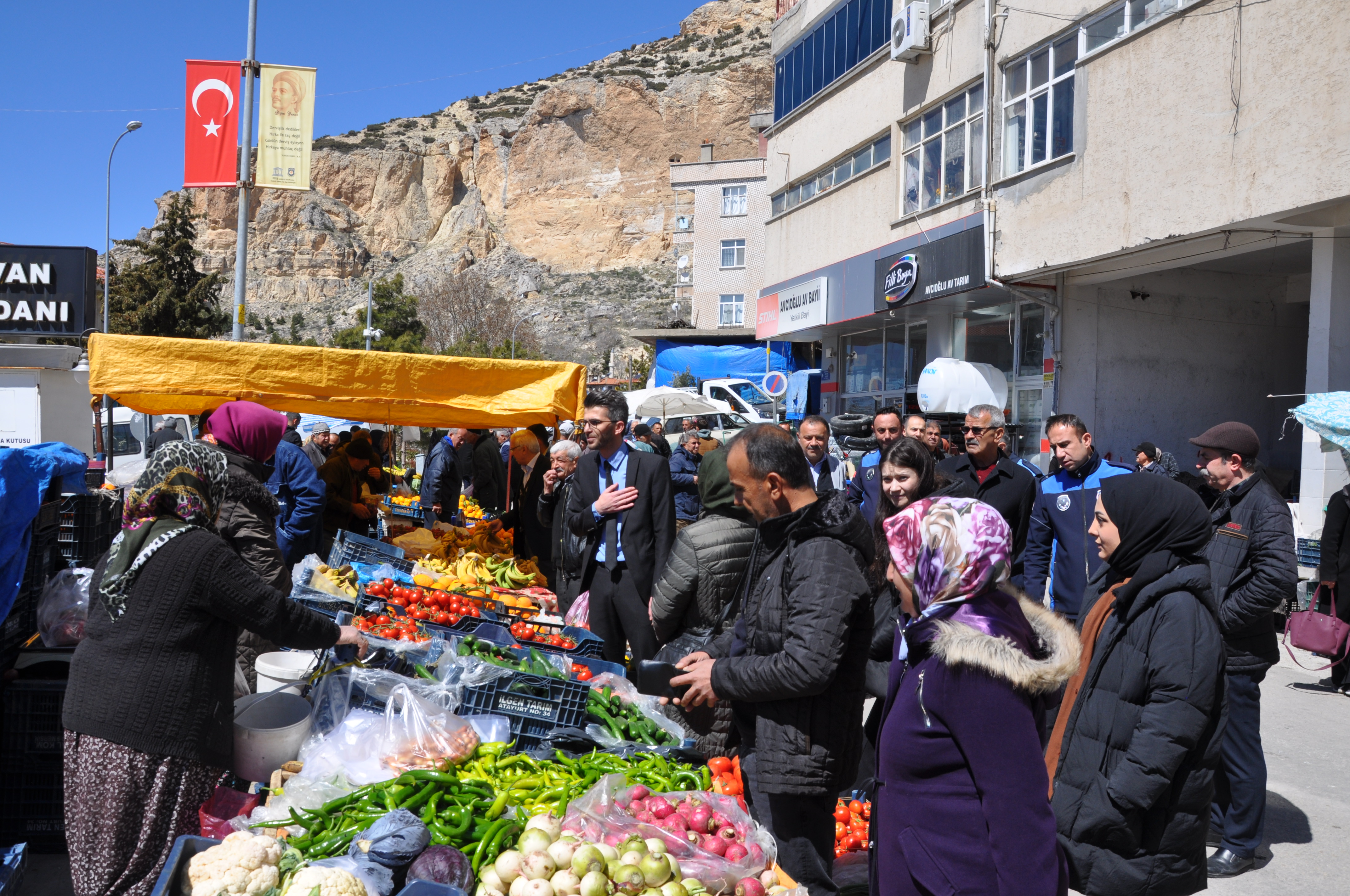 Pazar tezgâhlarını tek tek dolaşan Bozcu, hem esnafımızın hem de vatandaşlarımız istek ve sorunlarını dinleyerek hayırlı işler temennisinde bulundu.