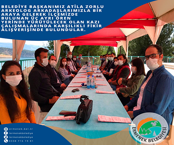 Belediye Başkanımız Atila Zorlu, Ermenek’in kültür turizmine katkı sağlanması ve ilçemizin tarihini gün yüzüne çıkarmak için bir süredir kazı çalışmalarına devam eden Arkeolog arkadaşlarımızla bir araya gelerek İlçemizde bulunan üç ayrı ören yerinde yürütülecek olan kazı çalışmalarında karşılıklı fikir alışverişinde bulundular.