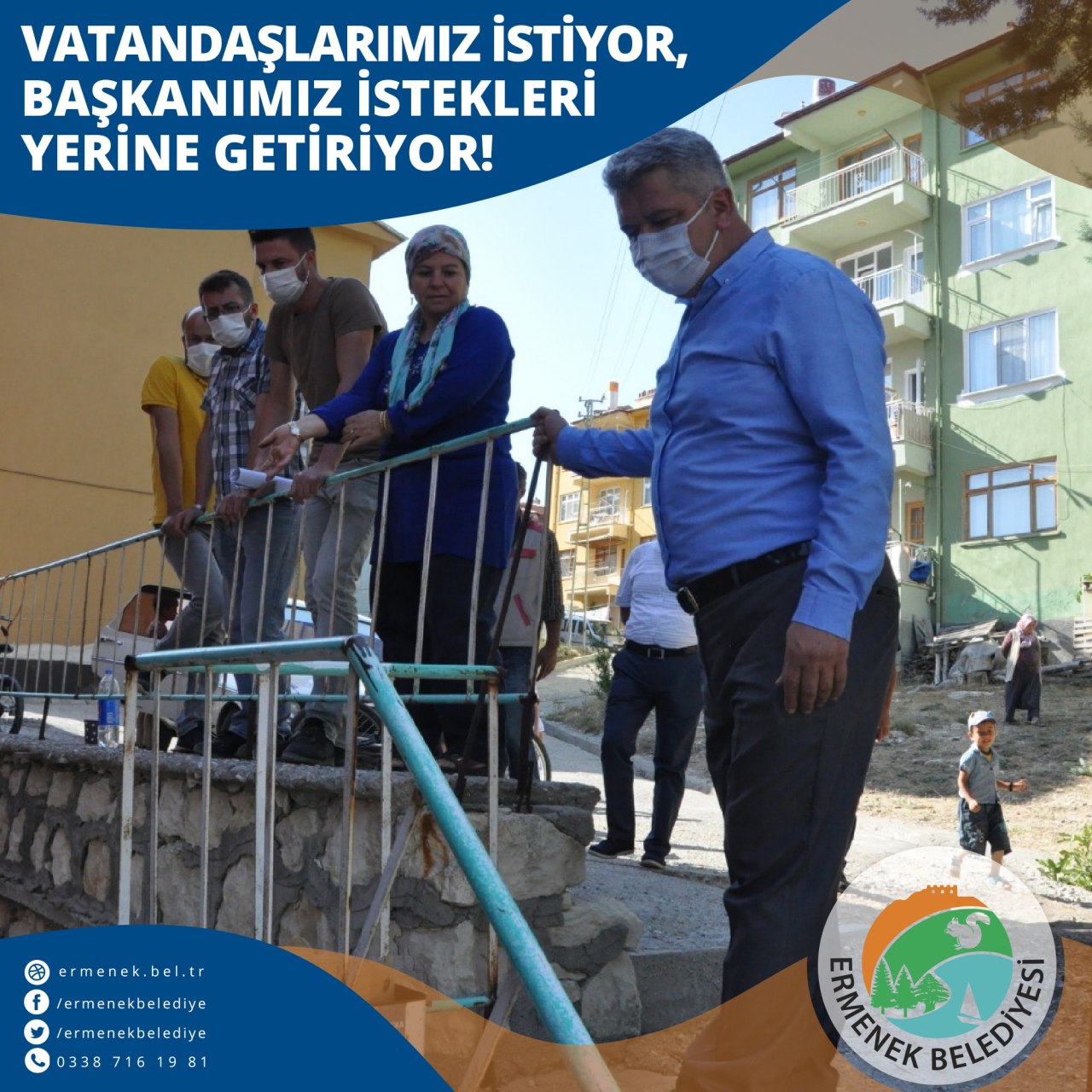 Bu incelemeler sonucunda Başkanımız gerekli talimatları vererek mahalle sakinlerinin istekleri doğrultusunda çevre temizliği, korkuluk demirleri ve istenilen yere merdiven yapımı tamamlanarak vatandaşlarımızın kullanımına sunulmuştur.